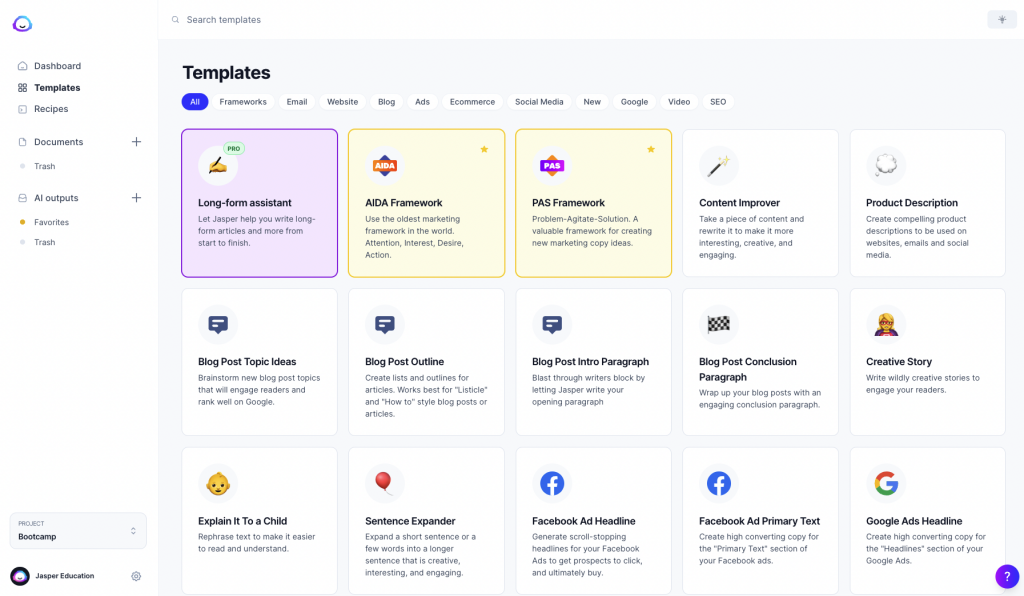 Content creators often need to adapt their writing style and format to cater to various industries, niches, and platforms. Jasper AI’s versatility enables users to generate content in a wide range of styles and formats, from formal reports and academic articles to casual blog posts and social media updates.