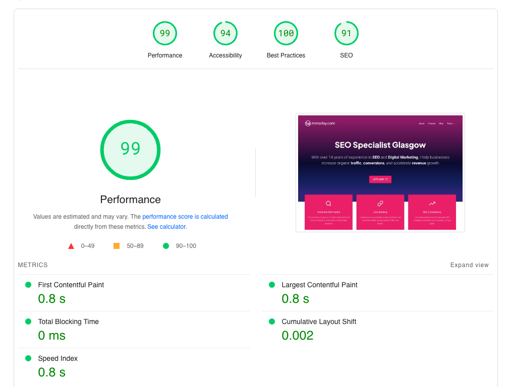 As you can see below I have seen significant speed improvements since switching to Kadence WP, this site performing super fast across both desktop and mobile devices.